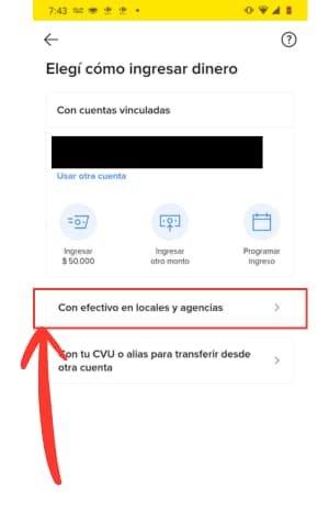 Paso 2: Elige la opción para ingresar dinero “Con efectivo en locales y agencias”.
